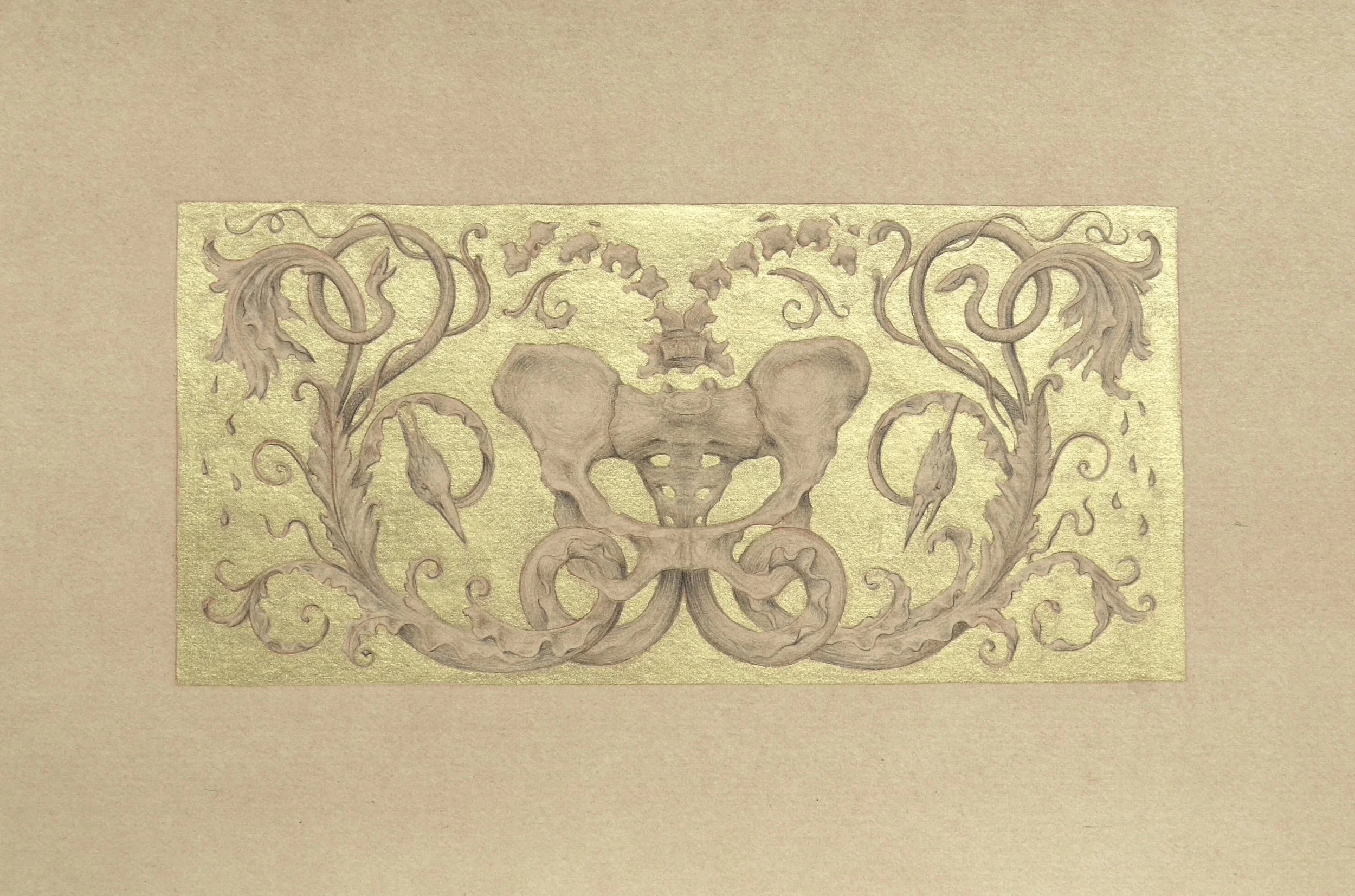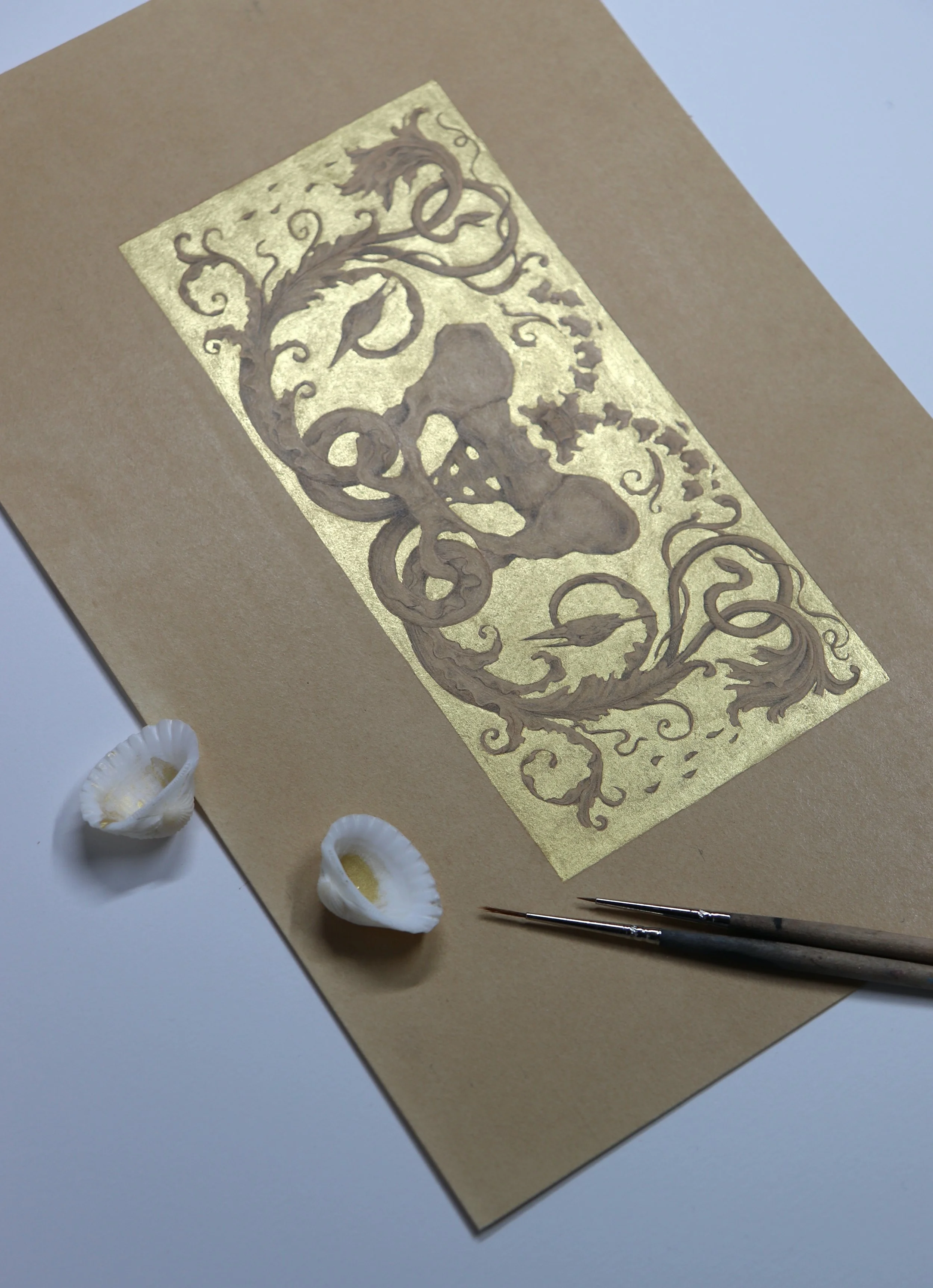 Moon gold on Gesso. 12ct. shell gold, watercolour and ink on paper