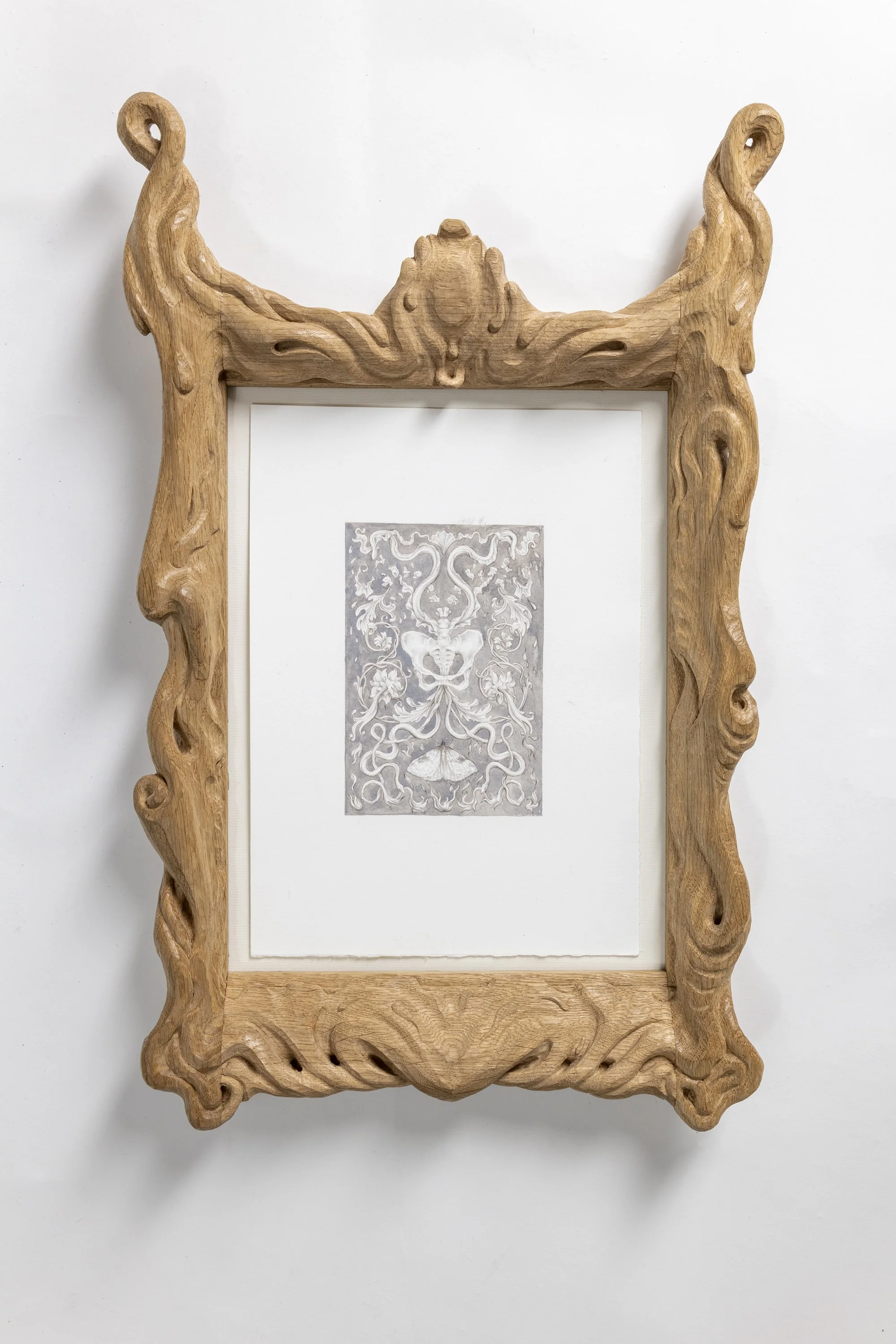 Reclaimed Oak, Bone black watercolour paint and carbon black Ink on paper + non reflective UV glass.